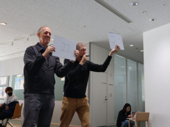 魔法の杖を持って、なりきり!ネイティブ教員が、審査員をつとめました。