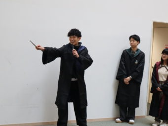 魔法学校を模した英語の「呪文発音コンテスト」では、実際に参加者がローブを着用し、