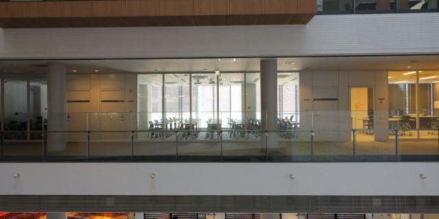5階部分となる吹き抜けの底、この左手側がCUBEのカフェテラスになります。